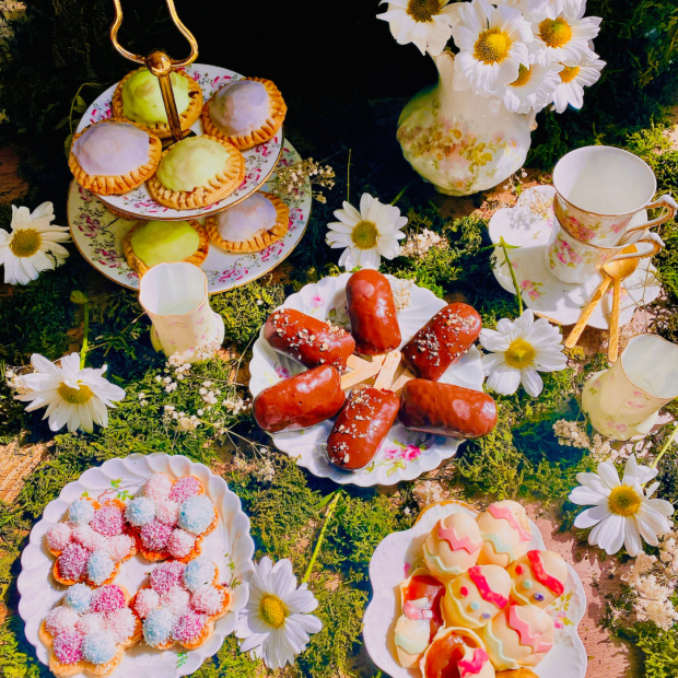 Quelle inspiration ! L’herbe verte, les cloches de l’église sonnent chaque 14ème jour du premier mois lunaire du printemps, du chocolat partout, les enfants qui courent pour la chasse aux oeufs, et les familles réunies pour célébrer Pâques comme le début d’une nouvelle vie ! Le lapin est devenu fou, un peu de carottes et de caramel, la magie du coco pour le plaisir et les dates pour frimer !